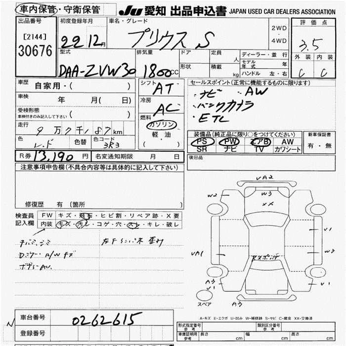 | G LED EDITION | DAA-ZVW30 | 2ZR-FXE | FF | CVT | 1797cc | 99ps(73kW)/5200rpm | AИ-92 | 2 760 000 | |