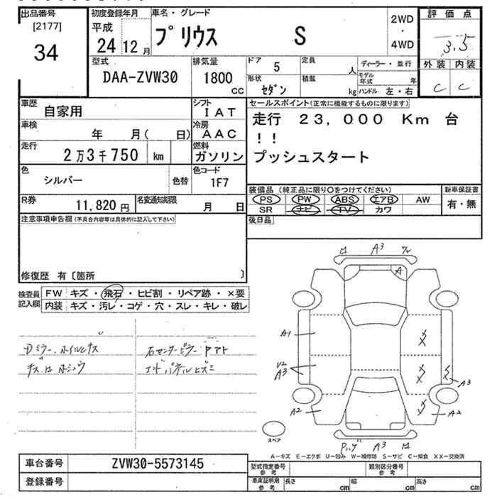 | S | DAA-ZVW30 | 2ZR-FXE | FF | CVT | 1797cc | 99ps(73kW)/5200rpm | AИ-92 | 2 320 000 | |