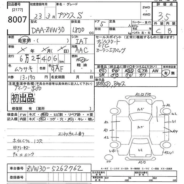 | G | DAA-ZVW30 | 2ZR-FXE | FF | CVT | 1797cc | 99ps(73kW)/5200rpm | AИ-92 | 2 520 000 | |