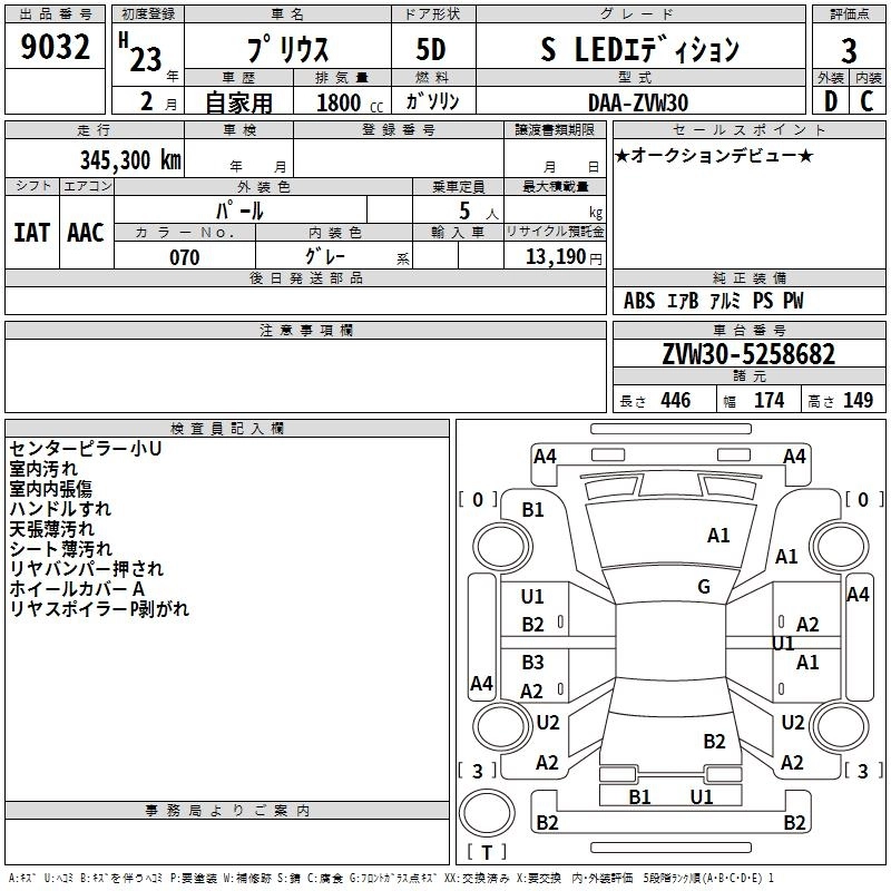 | G LED EDITION | DAA-ZVW30 | 2ZR-FXE | FF | CVT | 1797cc | 99ps(73kW)/5200rpm | AИ-92 | 2 760 000 | |