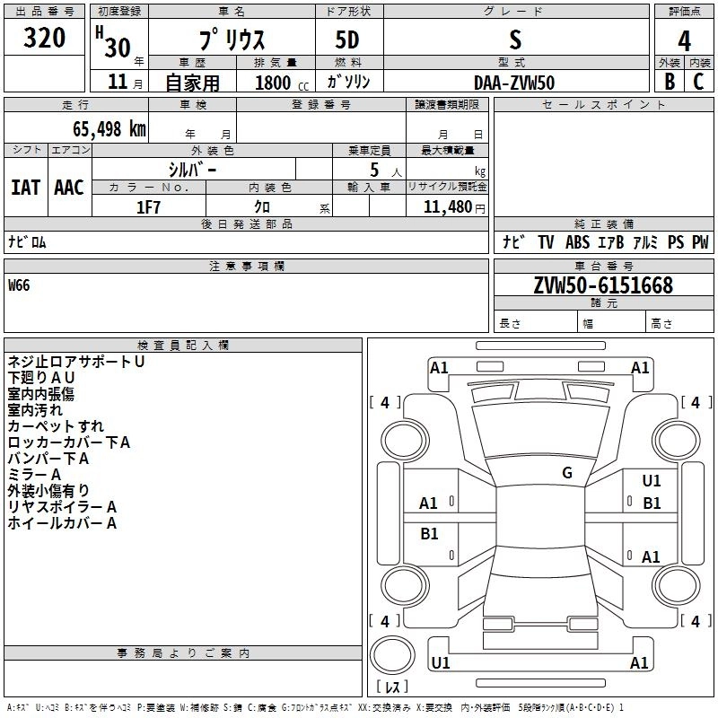 A DAA-ZVW55 2ZR-FXE Full-time 4WD CVT 1797cc 98ps(72kW)/5200rpm AИ-92 3 036 960