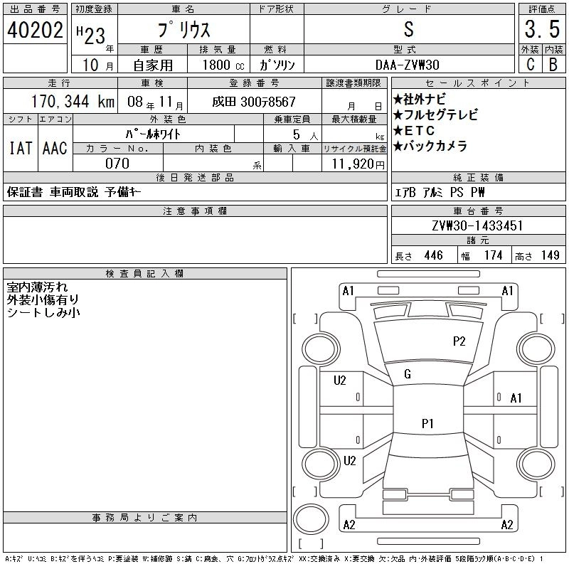 | S TOURING SELECTION | DAA-ZVW30 | 2ZR-FXE | FF | CVT | 1797cc | 99ps(73kW)/5200rpm | AИ-92 | 2 520 000 | |