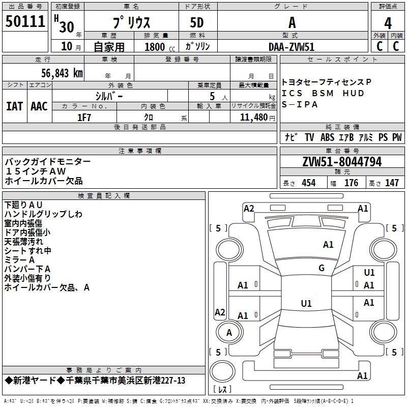 | E | DAA-ZVW51 | 2ZR-FXE | FF | CVT | 1797cc | 98ps(72kW)/5200rpm | AИ-92 | 2 518 560 |