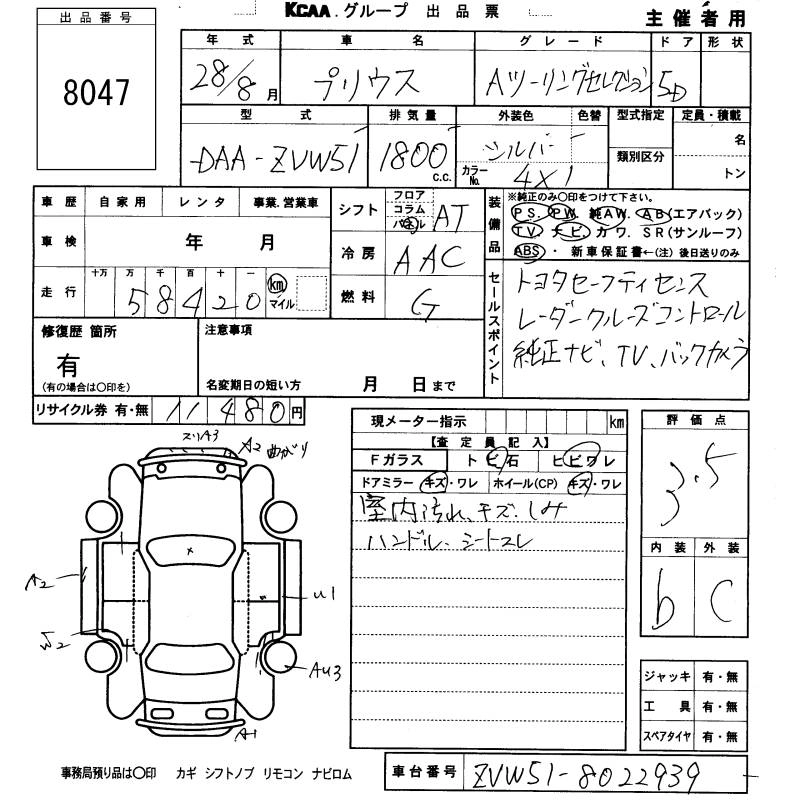 | S SAFETY PLUS | DAA-ZVW50 | 2ZR-FXE | FF | CVT | 1797cc | 98ps(72kW)/5200rpm | AИ-92 | 2 693 520 |