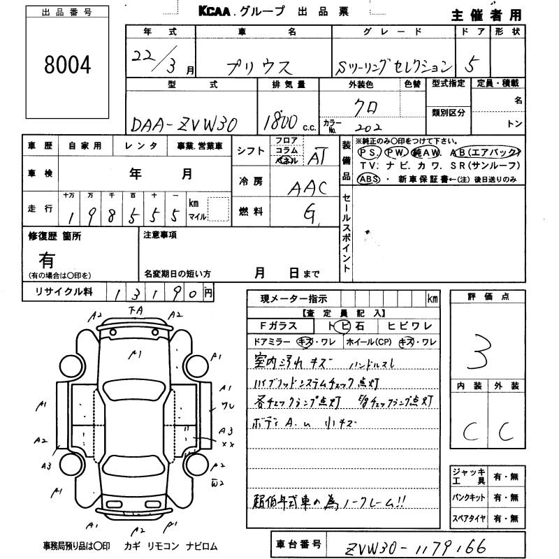 | G LED EDITION | DAA-ZVW30 | 2ZR-FXE | FF | CVT | 1797cc | 99ps(73kW)/5200rpm | AИ-92 | 2 760 000 | |