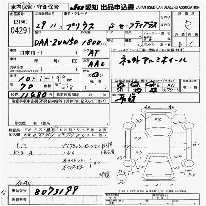 | A | DAA-ZVW55 | 2ZR-FXE | Full-time 4WD | CVT | 1797cc | 98ps(72kW)/5200rpm | AИ-92 | 2 971 963 | |