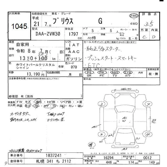 | S TOURING SELECTION | DAA-ZVW30 | 2ZR-FXE | FF | CVT | 1797cc | 99ps(73kW)/5200rpm | AИ-92 | 2 450 000 | |