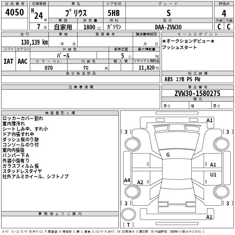 | G | DAA-ZVW30 | 2ZR-FXE | FF | CVT | 1797cc | 99ps(73kW)/5200rpm | AИ-92 | 2 520 000 | |