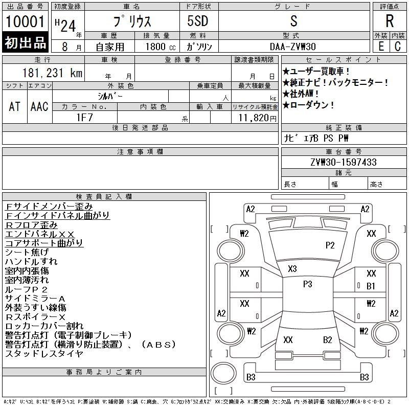 | G | DAA-ZVW30 | 2ZR-FXE | FF | CVT | 1797cc | 99ps(73kW)/5200rpm | AИ-92 | 2 520 000 | |