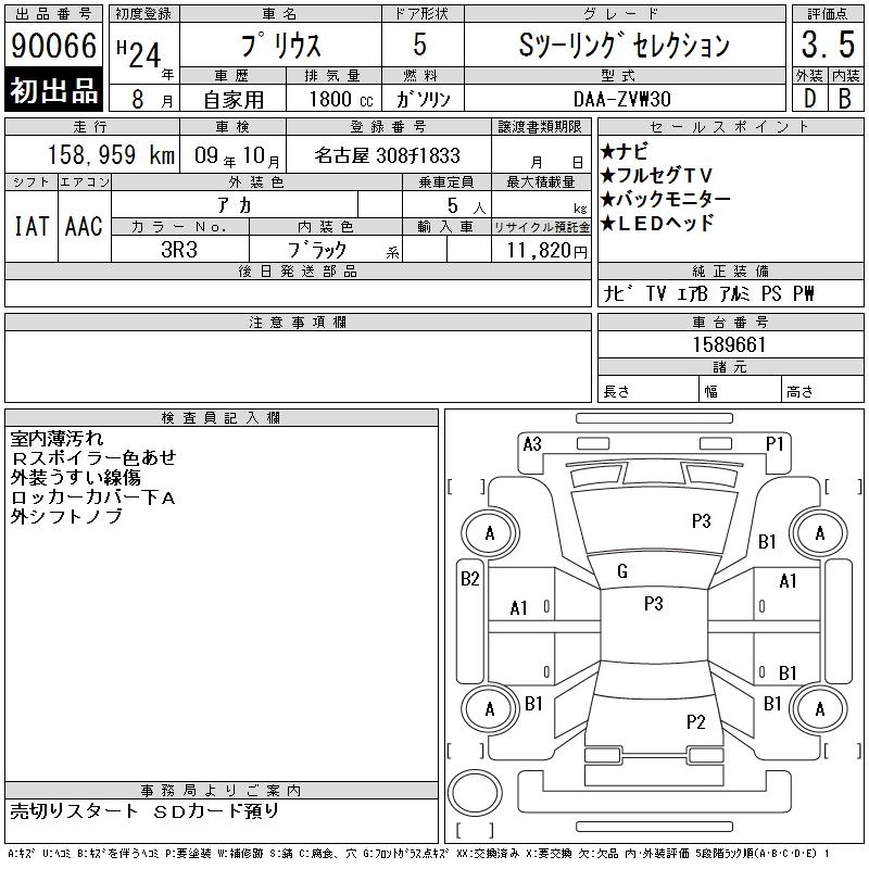 | S TOURING SELECTION | DAA-ZVW30 | 2ZR-FXE | FF | CVT | 1797cc | 99ps(73kW)/5200rpm | AИ-92 | 2 520 000 | |