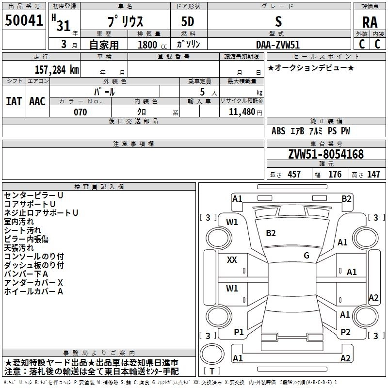 | A PREMIUM | DAA-ZVW51 | 2ZR-FXE | FF | CVT | 1797cc | 98ps(72kW)/5200rpm | AИ-92 | 3 234 000 | |