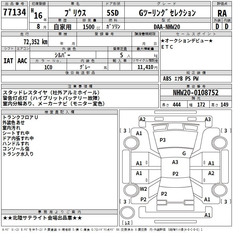 | S TOURING SELECTION | DAA-NHW20 | 1NZ-FXE | FF | CVT | 1496cc | 77ps(57kW)/5000rpm | AИ-92 | 2 425 500 | |