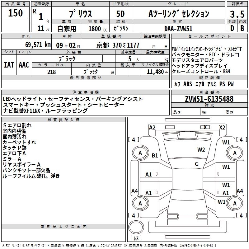 A DAA-ZVW55 2ZR-FXE Full-time 4WD CVT 1797cc 98ps(72kW)/5200rpm AИ-92 3 093 200