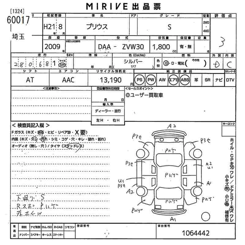 | S TOURING SELECTION | DAA-ZVW30 | 2ZR-FXE | FF | CVT | 1797cc | 99ps(73kW)/5200rpm | AИ-92 | 2 450 000 | |