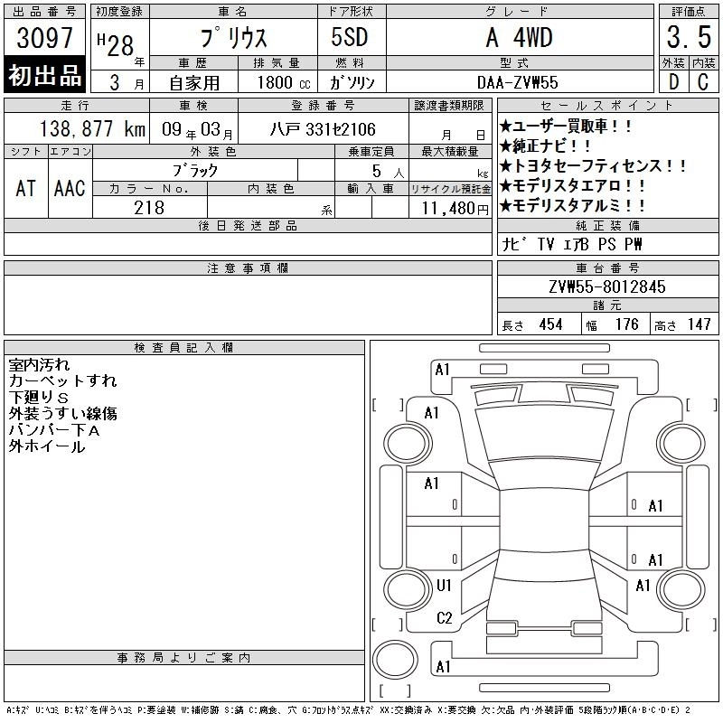 | S SAFETY PLUS | DAA-ZVW55 | 2ZR-FXE | Full-time 4WD | CVT | 1797cc | 98ps(72kW)/5200rpm | AИ-92 | 2 887 920 | |