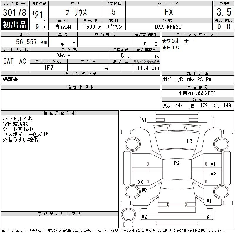 EX DAA-NHW20 1NZ-FXE FF CVT 1496cc 76ps(56kW)/5000rpm AИ-92 1 890 000