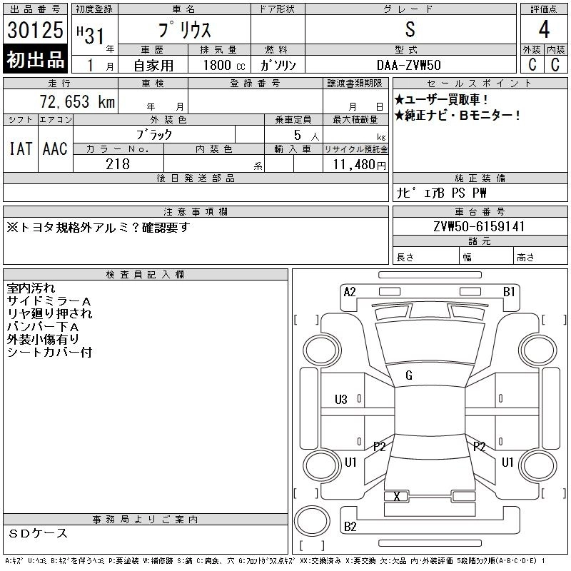 | A PREMIUM | DAA-ZVW51 | 2ZR-FXE | FF | CVT | 1797cc | 98ps(72kW)/5200rpm | AИ-92 | 3 234 000 | |