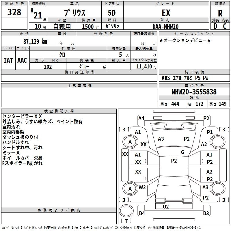 | EX | DAA-NHW20 | 1NZ-FXE | FF | CVT | 1496cc | 76ps(56kW)/5000rpm | AИ-92 | 1 890 000 |