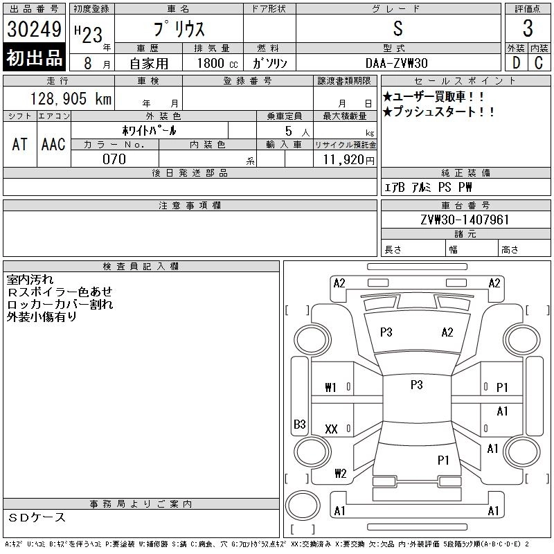 | S TOURING SELECTION | DAA-ZVW30 | 2ZR-FXE | FF | CVT | 1797cc | 99ps(73kW)/5200rpm | AИ-92 | 2 520 000 | |