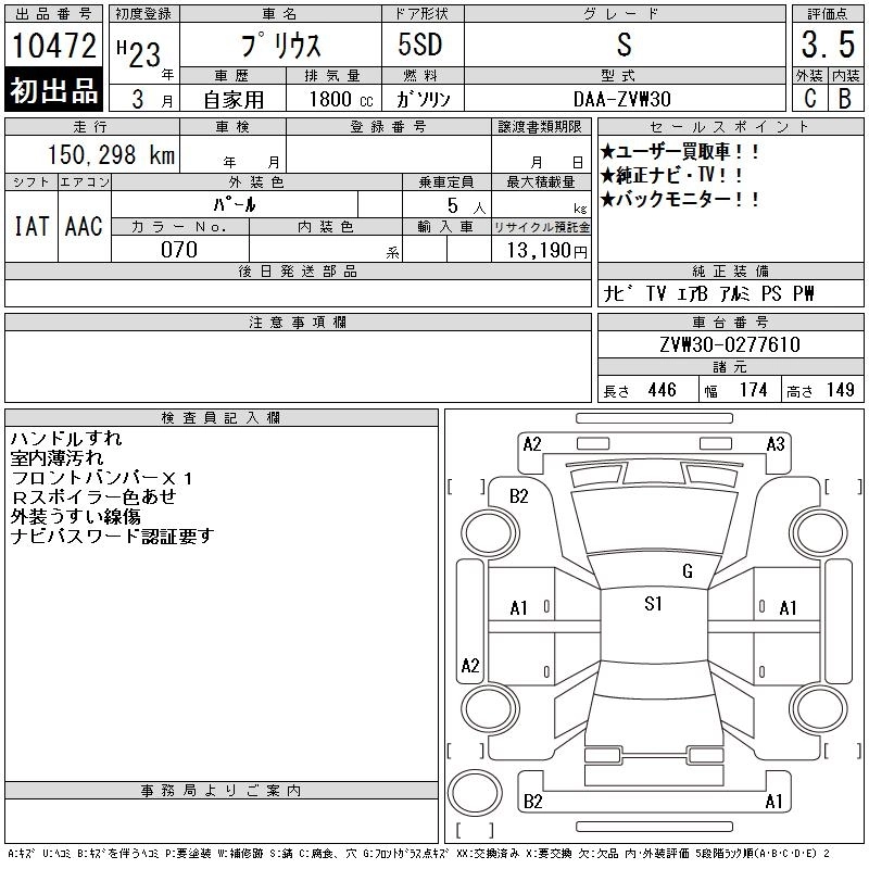 | S TOURING SELECTION | DAA-ZVW30 | 2ZR-FXE | FF | CVT | 1797cc | 99ps(73kW)/5200rpm | AИ-92 | 2 520 000 | |