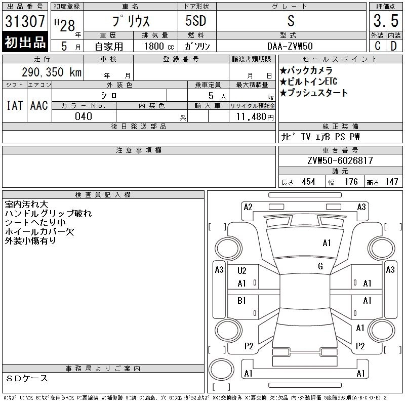 S SAFETY PLUS DAA-ZVW55 2ZR-FXE Full-time 4WD CVT 1797cc 98ps(72kW)/5200rpm AИ-92 2 887 920