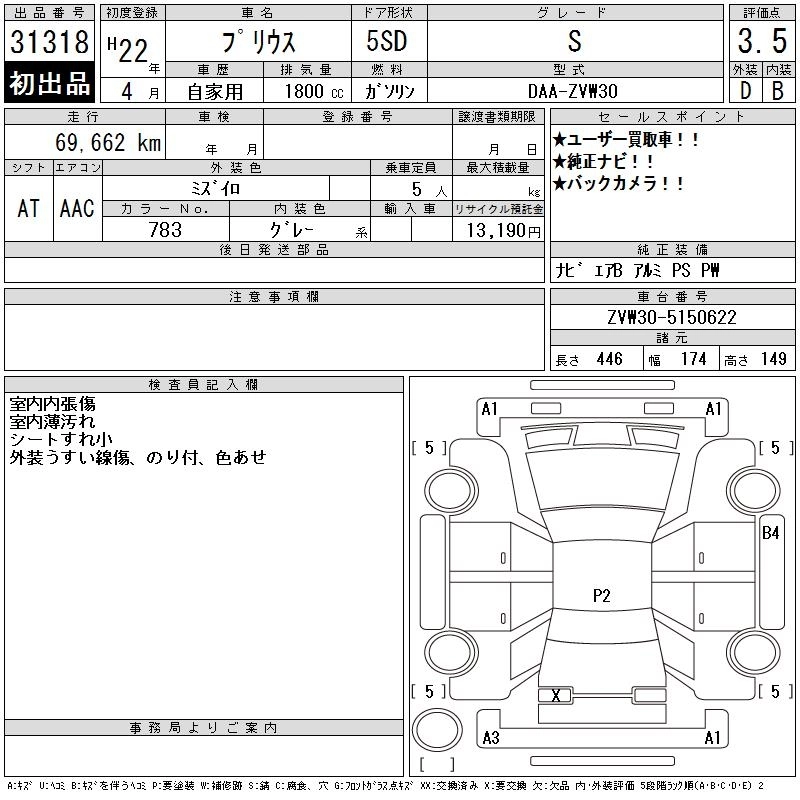 S LED EDITION DAA-ZVW30 2ZR-FXE FF CVT 1797cc 99ps(73kW)/5200rpm AИ-92 2 360 000