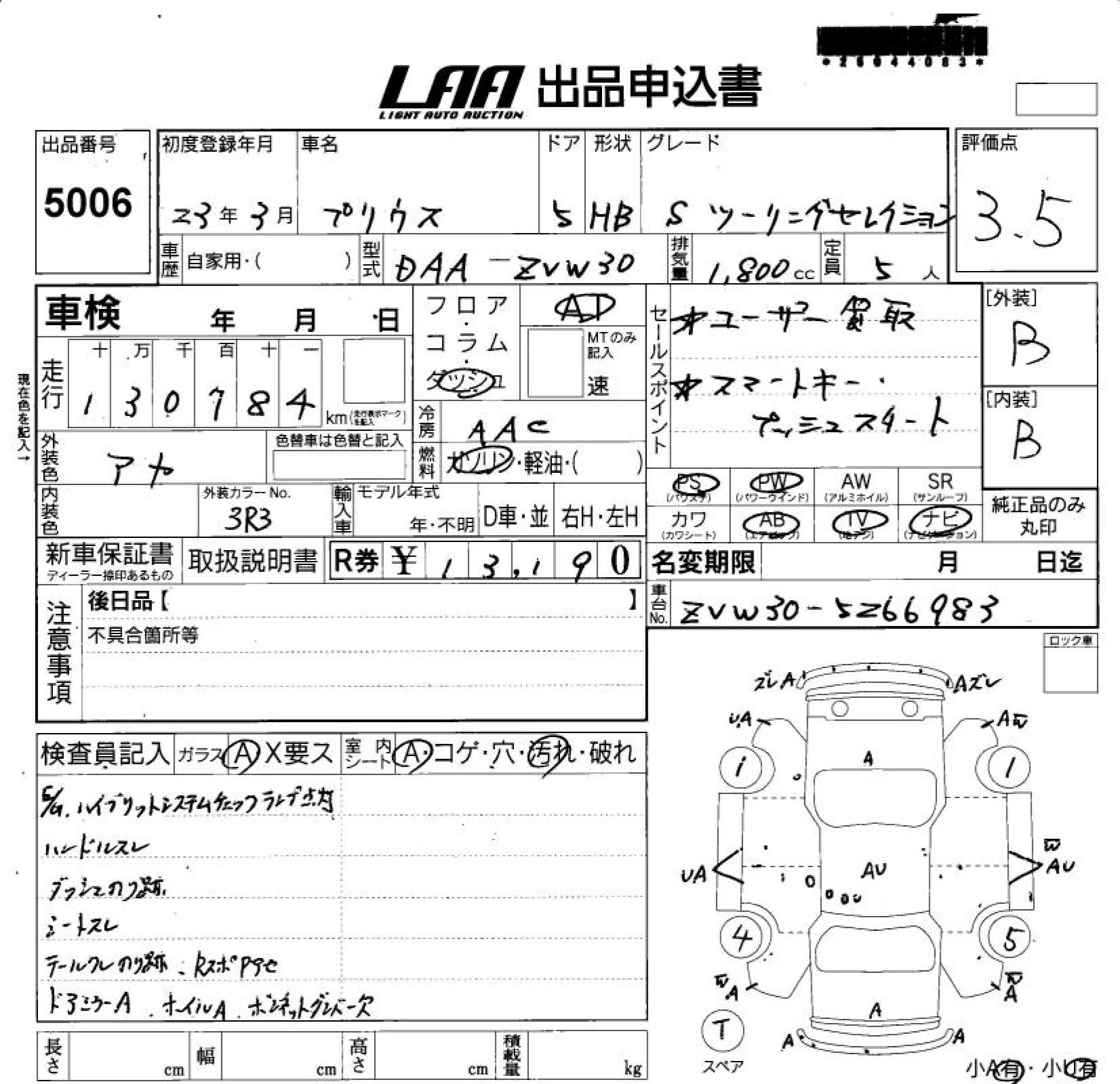 | G LED EDITION | DAA-ZVW30 | 2ZR-FXE | FF | CVT | 1797cc | 99ps(73kW)/5200rpm | AИ-92 | 2 760 000 | |