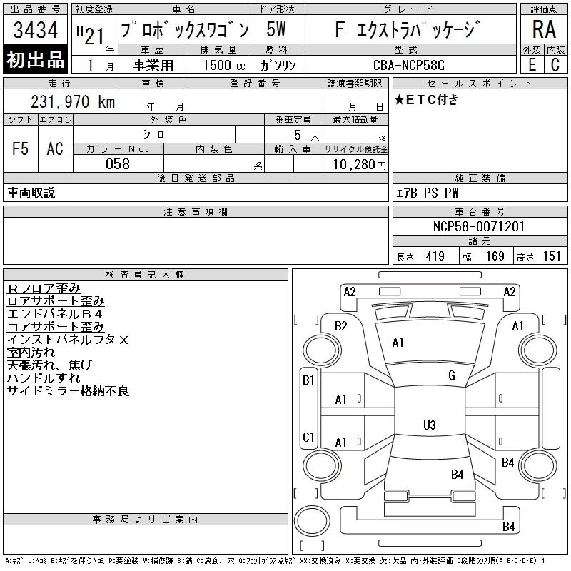 TOYOTA PROBOX WAGON 2009 г., лот № 3434