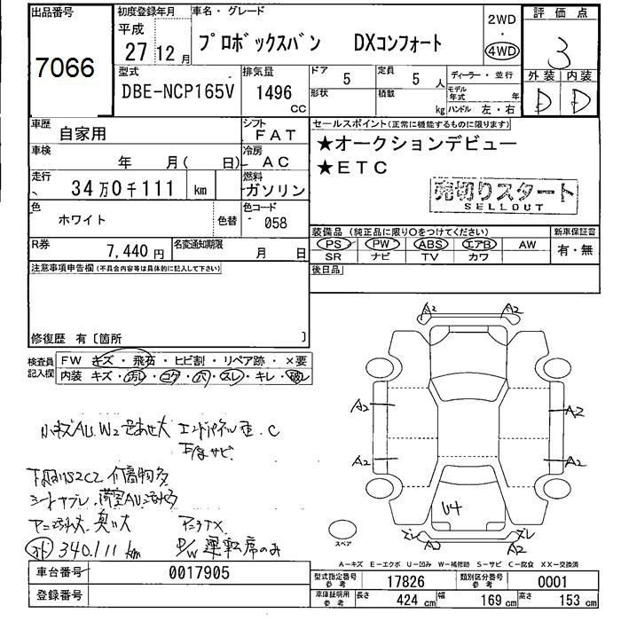 TOYOTA PROBOX 2015 г., лот № 7066