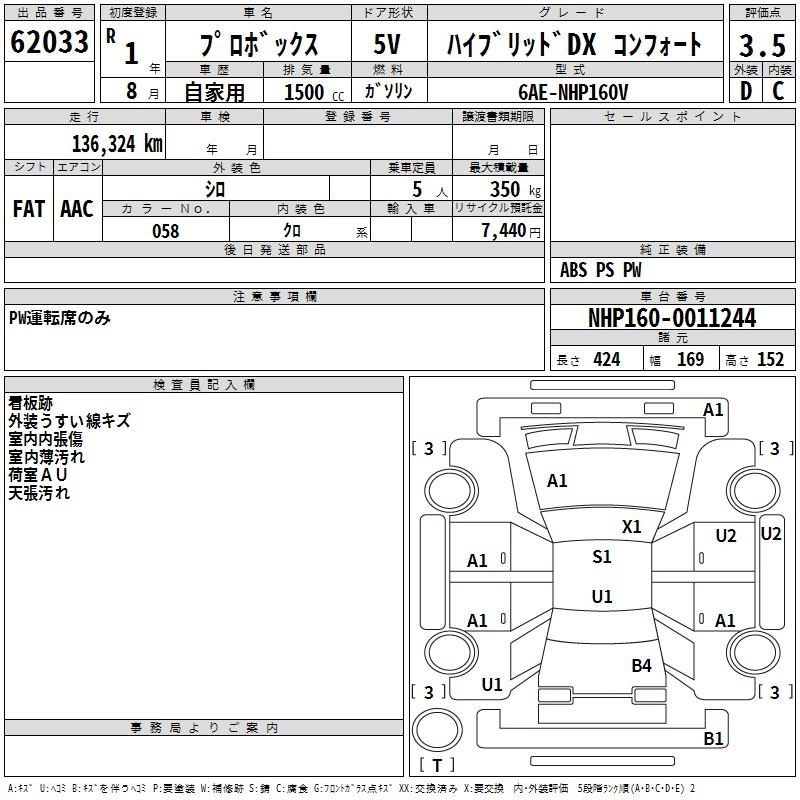 TOYOTA PROBOX 2019 г., лот № 62033