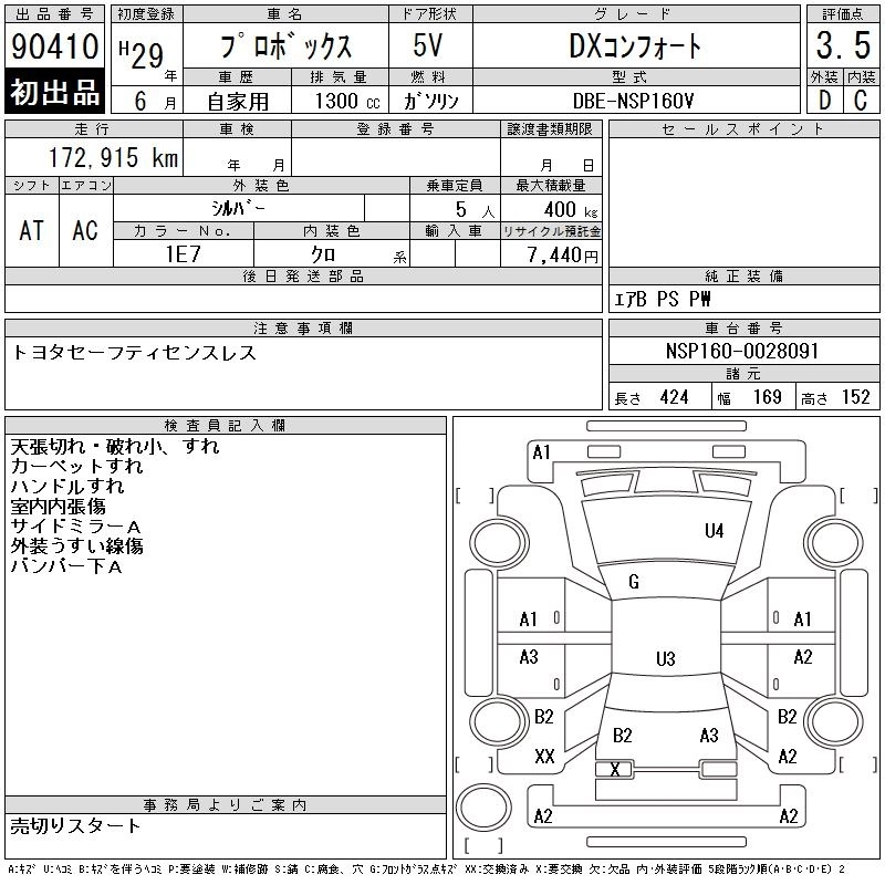 TOYOTA PROBOX 2017 г., лот № 90410