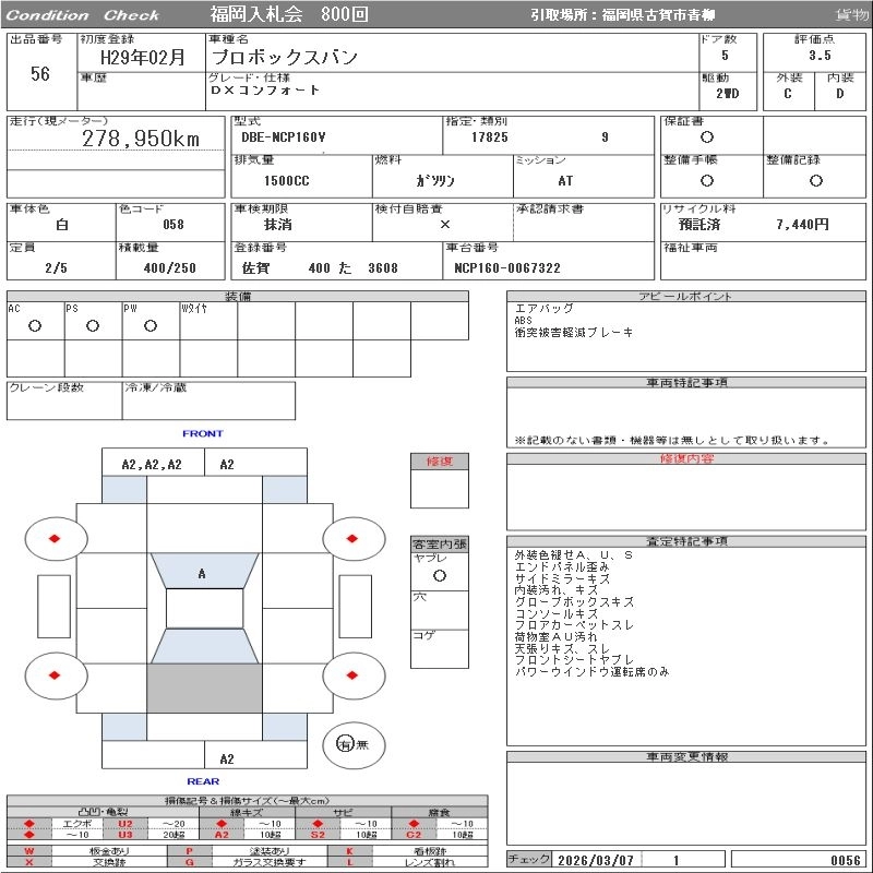 TOYOTA PROBOX 2017 г., лот № 56
