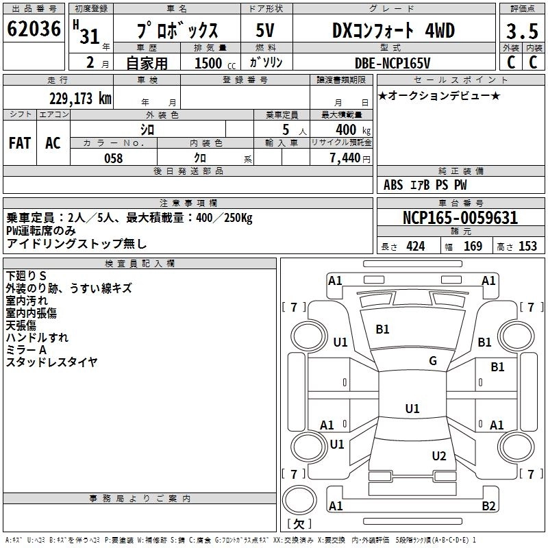 TOYOTA PROBOX 2019 г., лот № 62036