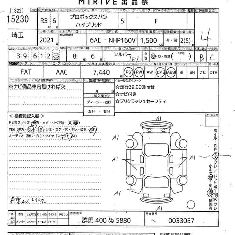 TOYOTA PROBOX 2021 г., лот № 15230