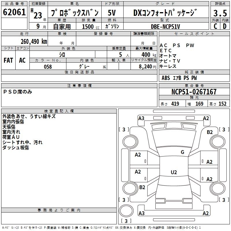 TOYOTA PROBOX 2011 г., лот № 62061