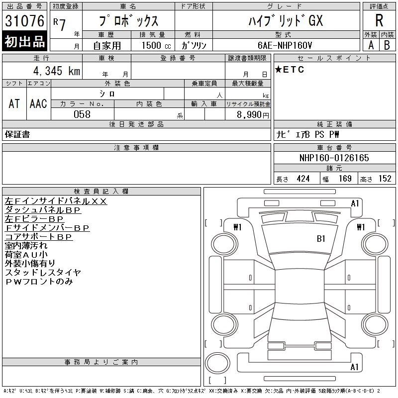 TOYOTA PROBOX 2025 г., лот № 31076