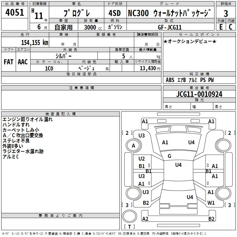 TOYOTA PROGRES 1999 г., лот № 4051