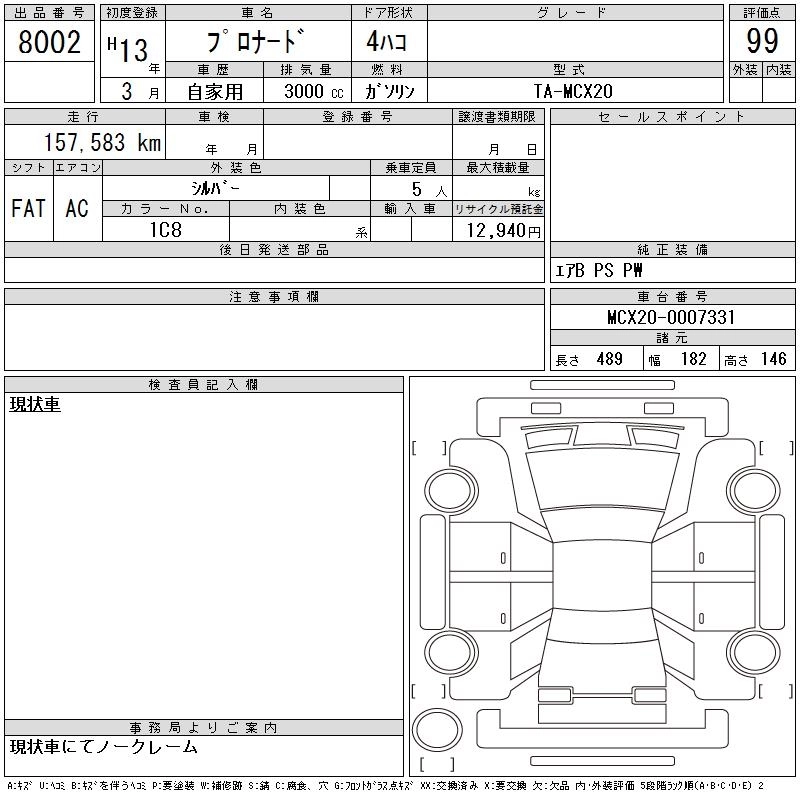 Год выпуска2001 Пробег 158 000 км КузовMCX20