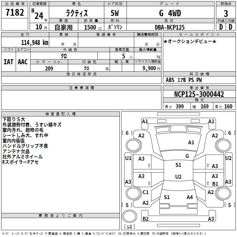 | X | DBA-NCP125 | 1NZ-FE | Full-time 4WD | CVT | 1496cc | 103ps(76kW)/6000rpm | AИ-92 | 1 708 000 | |