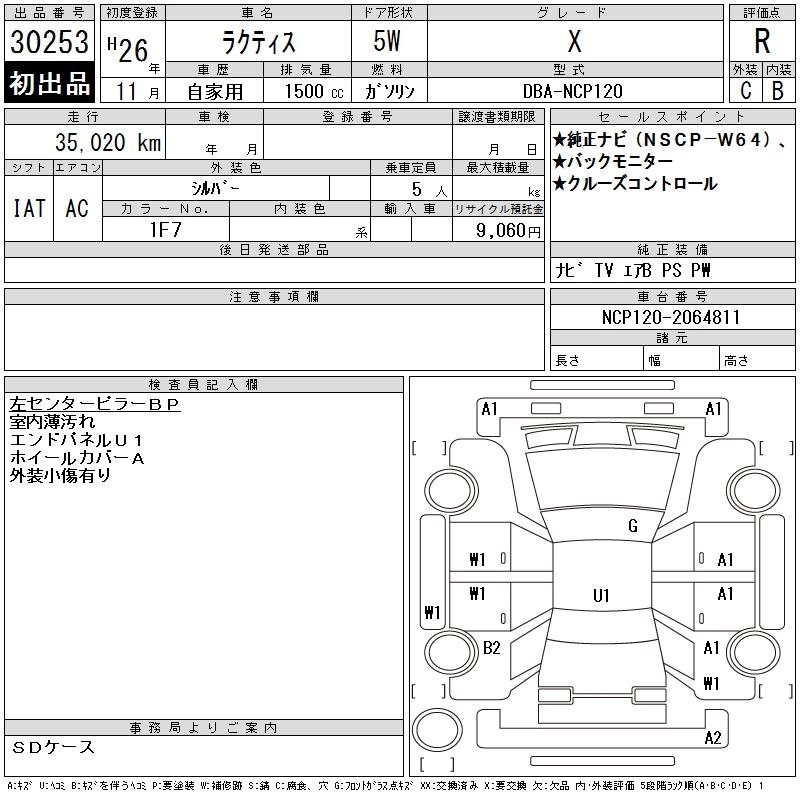 | X | DBA-NCP125 | 1NZ-FE | Full-time 4WD | CVT | 1496cc | 103ps(76kW)/6000rpm | AИ-92 | 1 777 371 | |