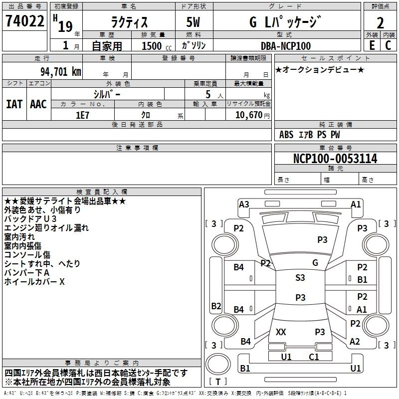 | X L PACKAGE | CBA-NCP105 | 1NZ-FE | Full-time 4WD | 4AT | 1496cc | 105ps(77kW)/6000rpm | AИ-92 | 1 743 000 | |