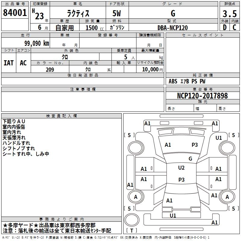 | X | DBA-NCP120 | 1NZ-FE | FF | CVT | 1496cc | 109ps(80kW)/6000rpm | AИ-92 | 1 540 000 | |