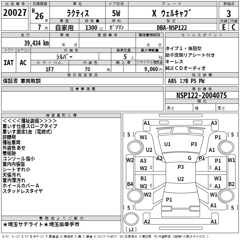 | X | DBA-NCP125 | 1NZ-FE | Full-time 4WD | CVT | 1496cc | 103ps(76kW)/6000rpm | AИ-92 | 1 777 371 | |