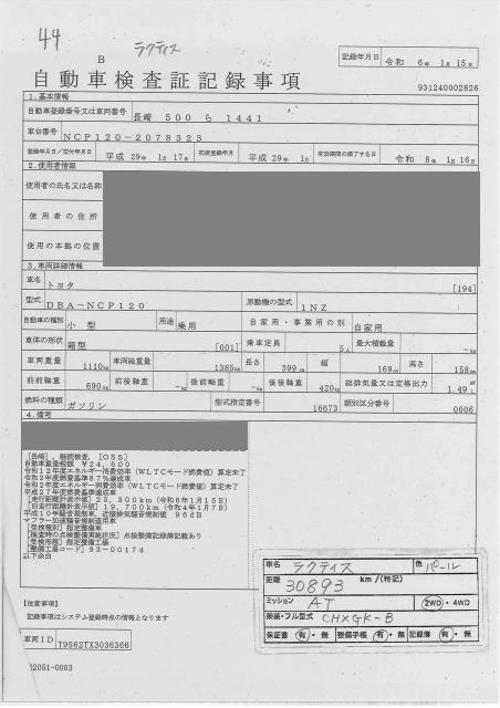 TOYOTA RACTIS 2017 г., лот № 44