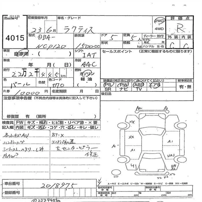 | X | DBA-NCP120 | 1NZ-FE | FF | CVT | 1496cc | 109ps(80kW)/6000rpm | AИ-92 | 1 540 000 | |