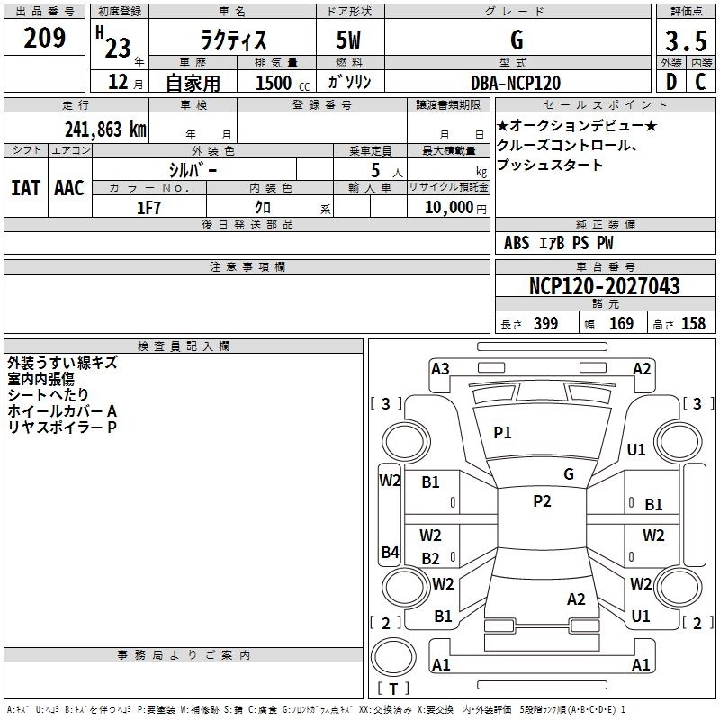 X DBA-NCP120 1NZ-FE FF CVT 1496cc 109ps(80kW)/6000rpm AИ-92 1 540 000