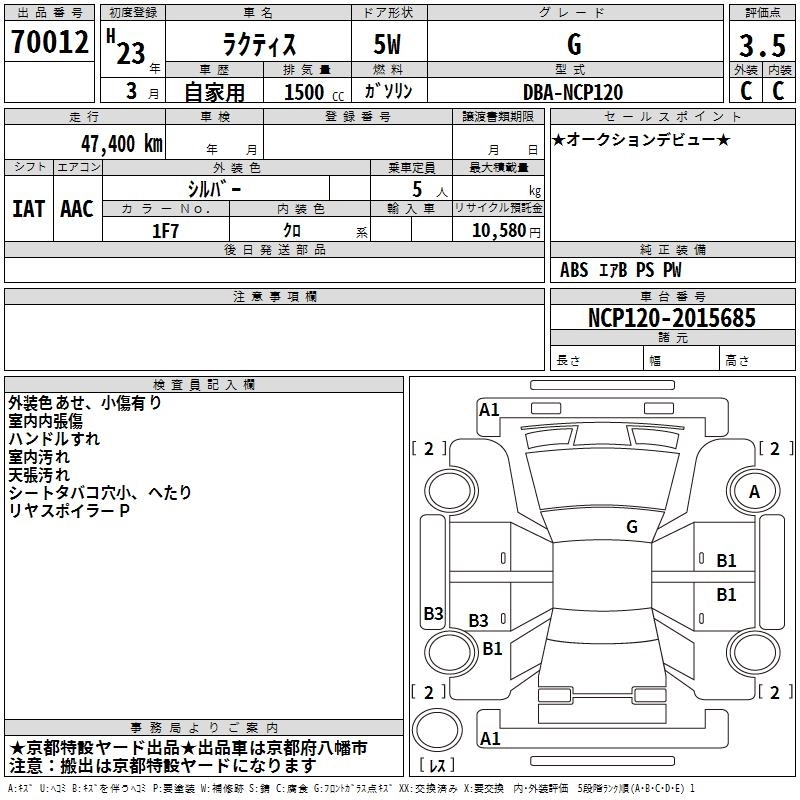 S DBA-NCP120 1NZ-FE FF CVT 1496cc 109ps(80kW)/6000rpm AИ-92 1 800 000