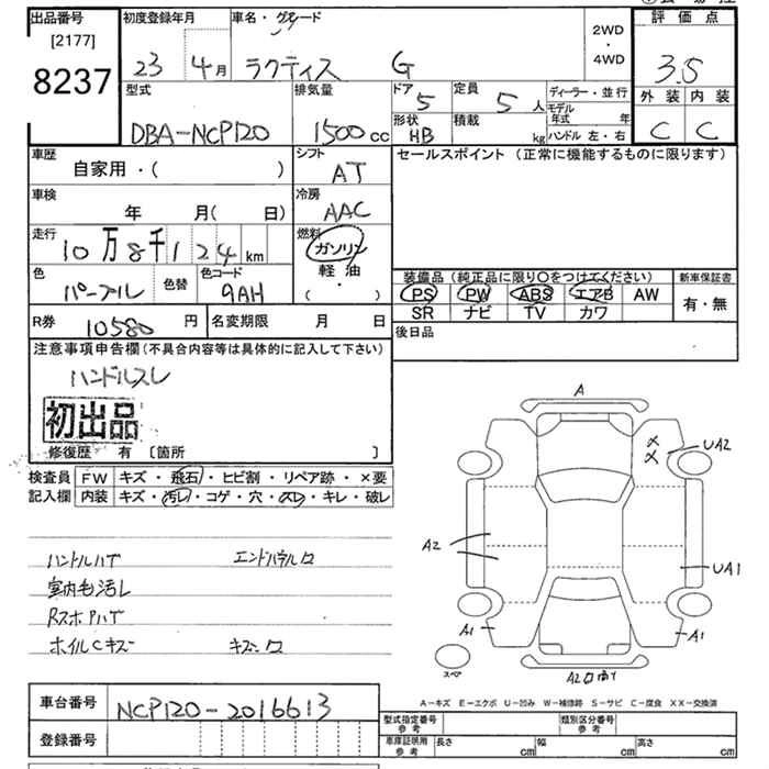 Статус выставлен на аукцион Лот 8237 Аукцион JU Tokyo Дата аукциона 16.03.2026