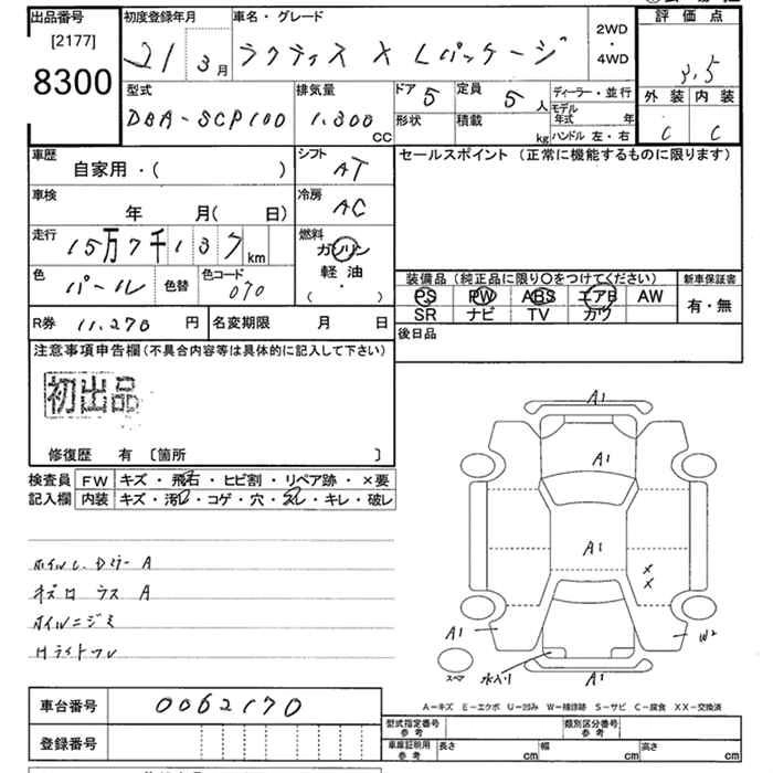 | G HID SELECTION | DBA-NCP100 | 1NZ-FE | FF | CVT | 1496cc | 110ps(81kW)/6000rpm | AИ-92 | 1 585 000 | |