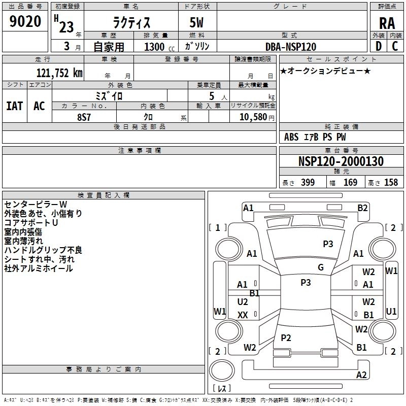 | X | DBA-NSP120 | 1NR-FE | FF | CVT | 1329cc | 95ps(70kW)/6000rpm | AИ-92 | 1 440 000 | |
